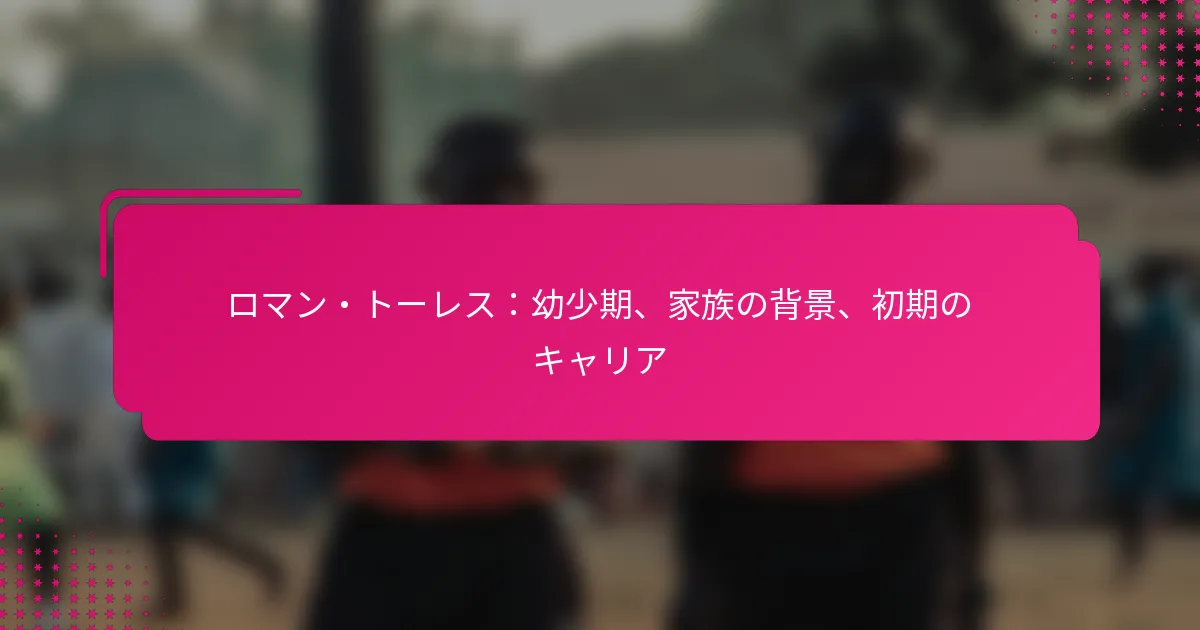 ロマン・トーレスの幼少期には、彼のアスリートとしての成長に寄与するいくつかの重要な出来事がありました。特に重要な瞬間は、地元の公園で初めてサッカーボールを蹴ったときであり、これが彼のスポーツへの情熱を燃え上がらせました。この初期の経験は、彼が成長するにつれてサッカーをより真剣に追求する動機となりました。